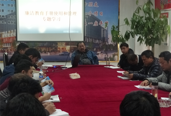 最后孟慶武書記作總結(jié)發(fā)言,希望通過這次開展廉潔教育手冊學(xué)習(xí)和保管的專題會(huì),能進(jìn)一步增強(qiáng)項(xiàng)目部黨員領(lǐng)導(dǎo)干部和重要崗位管理人員的廉潔自律意識,提高拒腐防變能力,營造一個(gè)風(fēng)清氣正的工作環(huán)境。