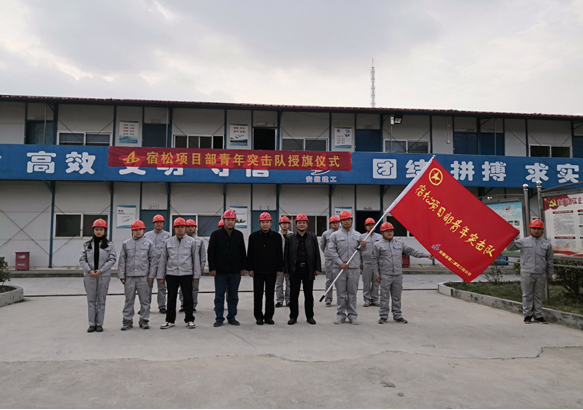 11月20日,宿松項目部結(jié)合公司“大干60天”勞動競賽活動熱潮,在公司工會、團委的支持下組建了安徽二建首支“青年突擊隊”,公司工會主席李林、副主席蒯家江、分公司支部書記陳習(xí)武應(yīng)邀參加了“青年突擊隊”授旗儀式并進行授旗。