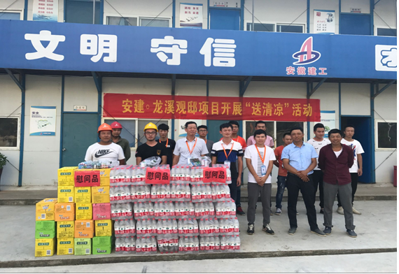 炎炎夏日高溫?zé)o情,絲絲涼意公司有愛。自7月以來,氣溫持續(xù)升高,為應(yīng)對高溫酷暑天氣龍溪觀邸項目部積極采取有效措施,及時開展夏季“送清涼”慰問活動,充分體現(xiàn)了項目部對廣大參建員工和農(nóng)民工的關(guān)愛。