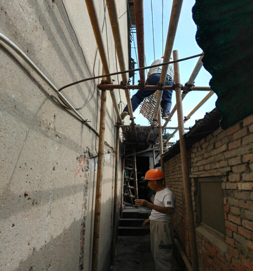 近日,公司后勤綜合服務(wù)部在對(duì)公司老舊房屋進(jìn)行日常巡查時(shí)發(fā)現(xiàn),原四分公司生活基地大禮堂山墻檐口出現(xiàn)間斷式沉降斷裂。經(jīng)檢查,此處的問(wèn)題是由墻體自重及屋面木質(zhì)結(jié)構(gòu)自然腐朽所導(dǎo)致的。山墻腳即是住戶出入通道,隨時(shí)有墜落傷人的安全隱患。鑒于大禮堂層高十幾米,無(wú)法實(shí)施維修處理,我部第一時(shí)間向領(lǐng)導(dǎo)匯報(bào)后,及時(shí)拿出整頓方案,頂著烈日高溫,立即沿山墻搭建一條十幾米長(zhǎng)的鋼管架安全通道,排除了隱患,確保居民出入平安。