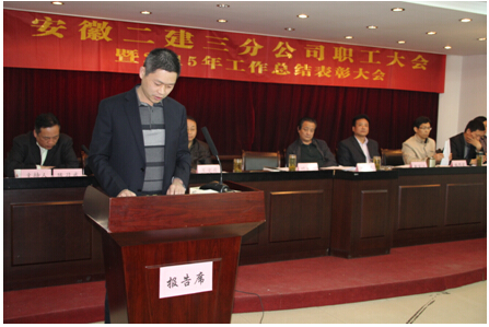 分公司黨支部書記陳習(xí)武在會議上就2015年分公司黨務(wù)、工會工作做了總結(jié)發(fā)言,并強調(diào)2016年分公司黨務(wù)、工會工作要繼續(xù)以“全面貫徹黨的十八大、十八屆三中、四中、五中全會精神,深入落實集團(tuán)首屆職代會精神及二建公司十五屆三次職代會精神”為主要工作,夯實基礎(chǔ),充分發(fā)揮群團(tuán)組織作用,加強宣傳思想政治工作,推動企業(yè)企務(wù)公開,堅持黨風(fēng)廉政建設(shè)和反腐倡廉工作,為促進(jìn)企業(yè)和諧穩(wěn)定發(fā)展保駕護(hù)航。