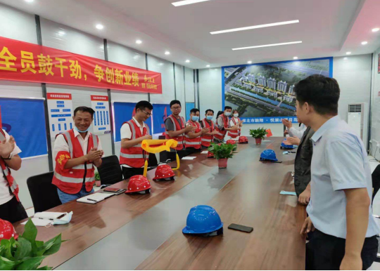 9月26日上午,安徽二建第一分公司承建的融翔·悅瀾山項目圓滿完成“6.20”“9.20”雙節(jié)點預售搶工任務,獲得建設單位表彰。悅瀾山項目因工期緊、任務重,自開工以來便吹響了搶工的號角。項目部通過在施工現(xiàn)場懸掛宣傳標語、定期召開進度協(xié)調(diào)分析會等方式,全體員工上下一心、團結(jié)協(xié)作,保質(zhì)保量的完成了 “6.20”“9.20”雙節(jié)點任務,贏得了建設單位的認可與好評,取得了階段性的勝利。