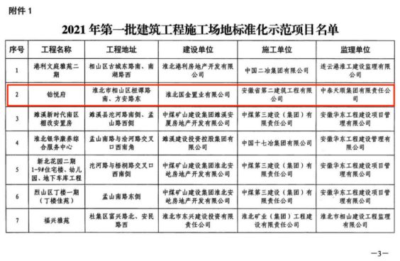 11月2日,淮北市住房和城鄉(xiāng)建設(shè)局、淮北市生態(tài)環(huán)境局公布了第一批淮北市“建筑工程施工場(chǎng)地標(biāo)準(zhǔn)化示范項(xiàng)目”名單,安徽二建第一分公司淮北鉑悅府項(xiàng)目在考核評(píng)價(jià)過程中,達(dá)到優(yōu)良等級(jí),被評(píng)為2021年淮北市第一批建筑工程施工場(chǎng)地標(biāo)準(zhǔn)化示范項(xiàng)目。
