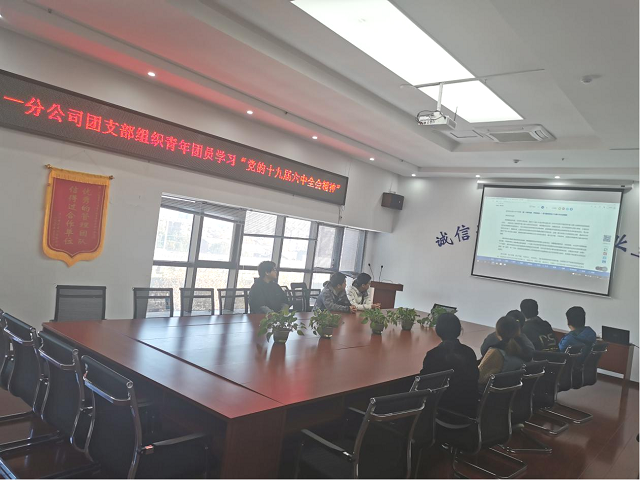 黨旗所指就是團旗所向,12月3日上午,第一分公司團支部在會議室組織機關(guān)青年團員學(xué)習(xí)十九屆六中全會精神。