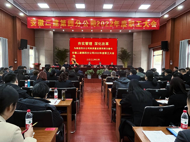 3月4日上午,第四分公司順利召開了2022年度職工大會。公司黨委副書記、總經(jīng)理李建成、黨委工作部主任施用宏、工會副主席、女工委主任王俊到會指導(dǎo)。第四分公司100名職工參加會議。