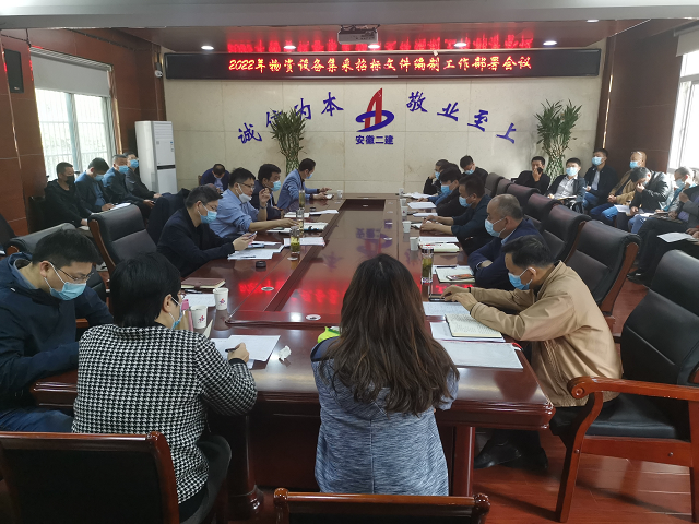 4月19日上午,安徽二建公司在一樓會議室召開2022年物資設(shè)備集采工作部署會議。公司總經(jīng)理李建成、副總經(jīng)理葉和永以及相關(guān)職能部門負(fù)責(zé)人、所屬各單位行政負(fù)責(zé)人、生產(chǎn)副經(jīng)理及相關(guān)科室負(fù)責(zé)人參加會議,會議由公司副總經(jīng)理、總工程師費(fèi)勤波主持。