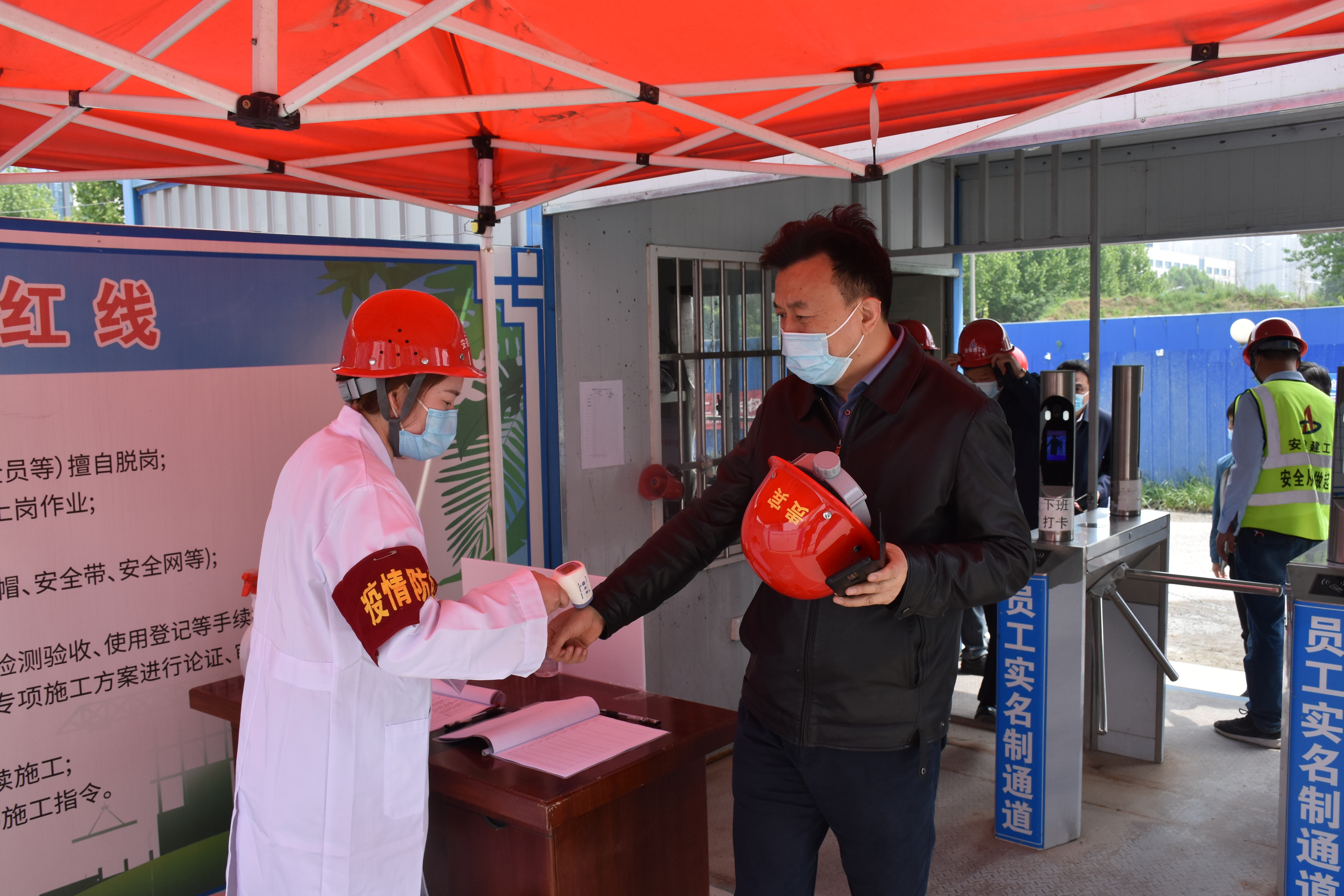 4月20日上午,建工控股黨委委員、紀(jì)委書記、監(jiān)察專員王汪苗一行赴安徽二建文一春風(fēng)里項(xiàng)目督導(dǎo)疫情防控工作,安徽二建黨委委員、副總經(jīng)理葉和永,黨委委員、紀(jì)委書記沈壯參加督導(dǎo)。