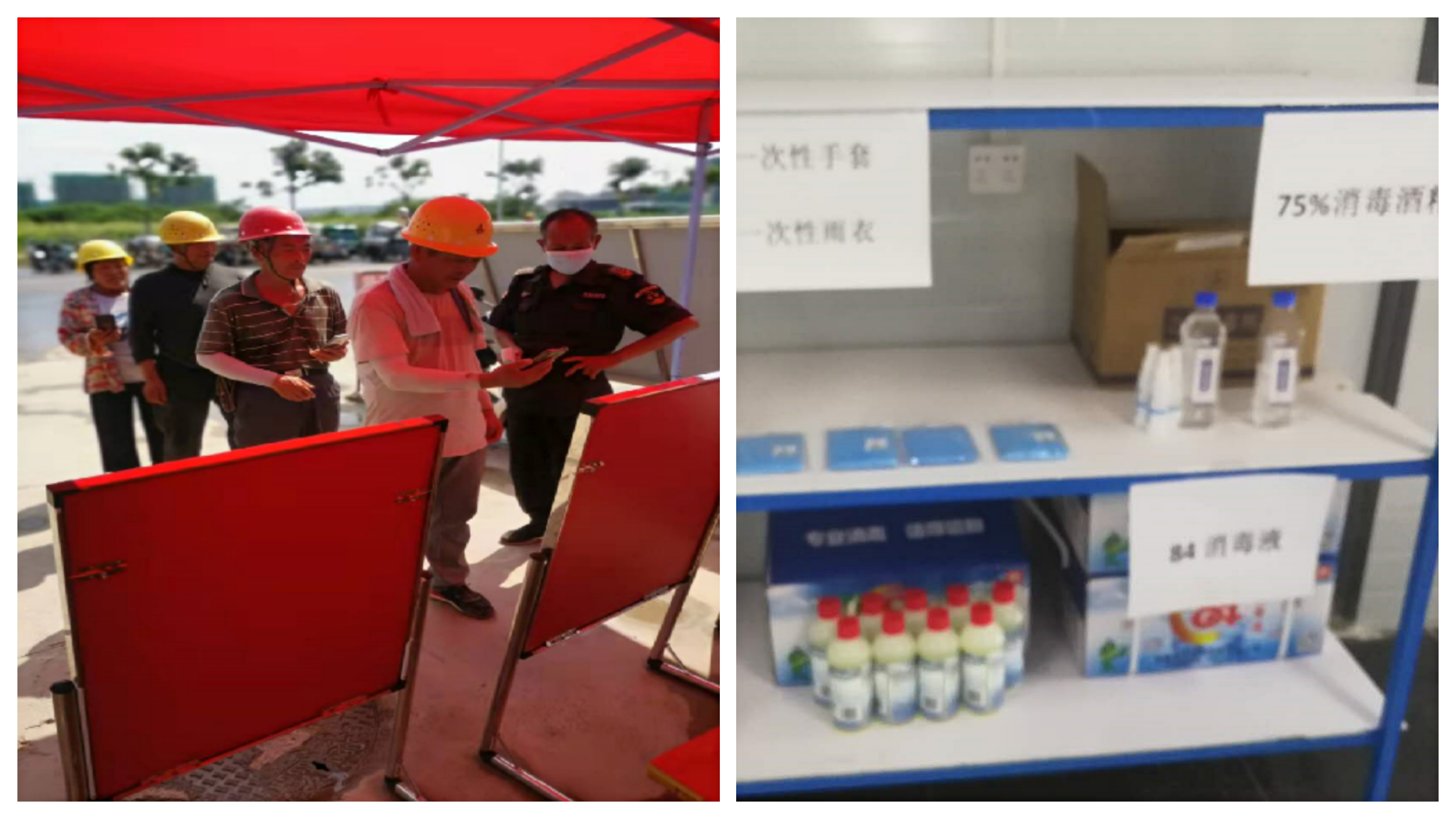 在當(dāng)前疫情形勢依然嚴(yán)峻復(fù)雜的情況下,項(xiàng)目部嚴(yán)格落實(shí)疫情防控措施,做好流動人員臺賬管理,及時進(jìn)行摸排和更新,實(shí)施動態(tài)管理,安排儲備消毒液、酒精、手套、口罩等防疫物資,對人員集中區(qū)域定期進(jìn)行消殺?,F(xiàn)場實(shí)行封閉管理,所有人員必須經(jīng)登記、測溫、核驗(yàn)雙碼并持通行證方可進(jìn)入。
