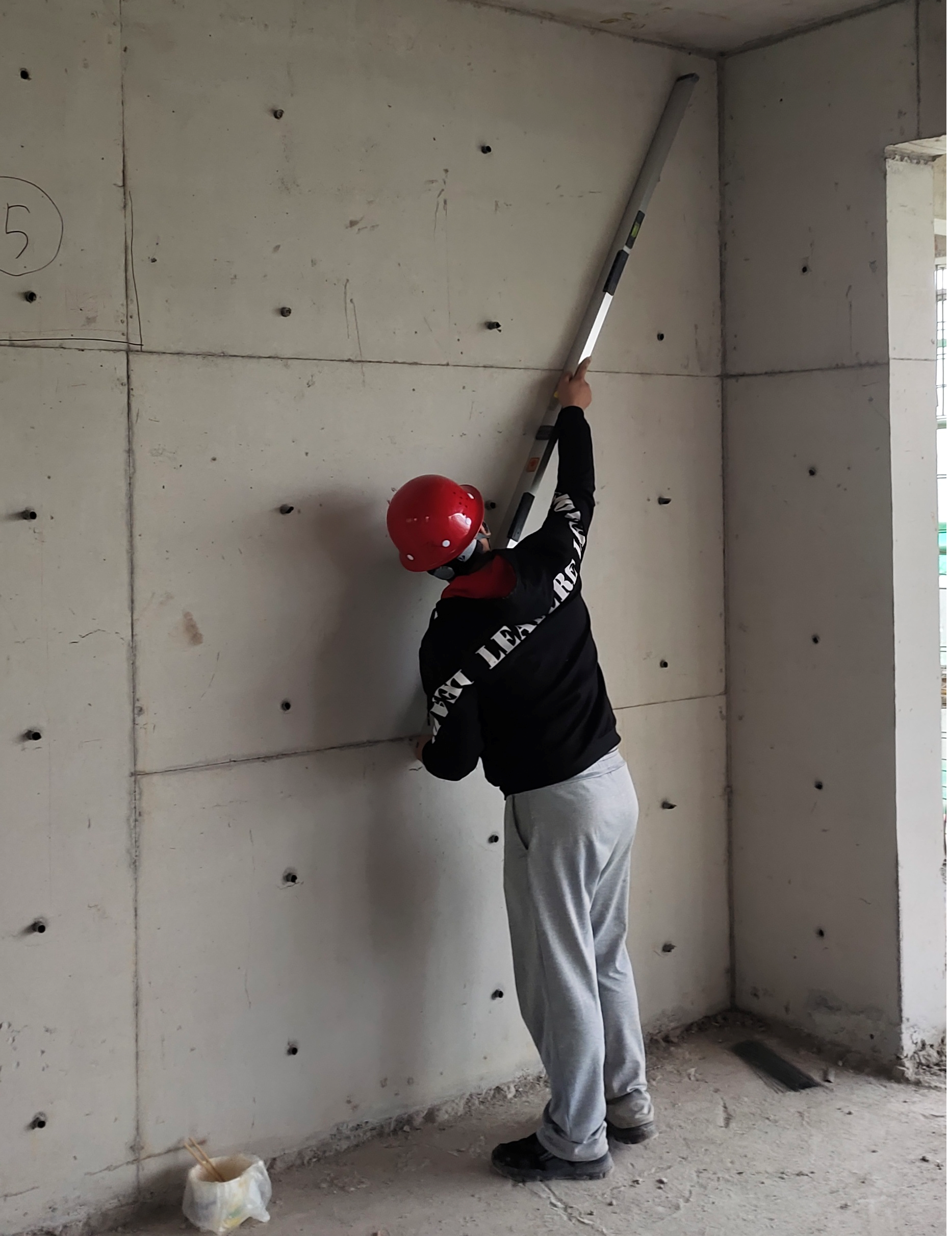 質(zhì)量員節(jié)日期間全過程堅(jiān)守現(xiàn)場,保證模板鋼筋、混凝土澆筑等施工環(huán)節(jié)標(biāo)準(zhǔn)規(guī)范,精準(zhǔn)推進(jìn)。現(xiàn)場對混凝土墻體進(jìn)行回彈檢測和實(shí)測實(shí)量并及時進(jìn)行實(shí)測數(shù)據(jù)上墻,檢查、發(fā)現(xiàn)、記錄、整改問題。