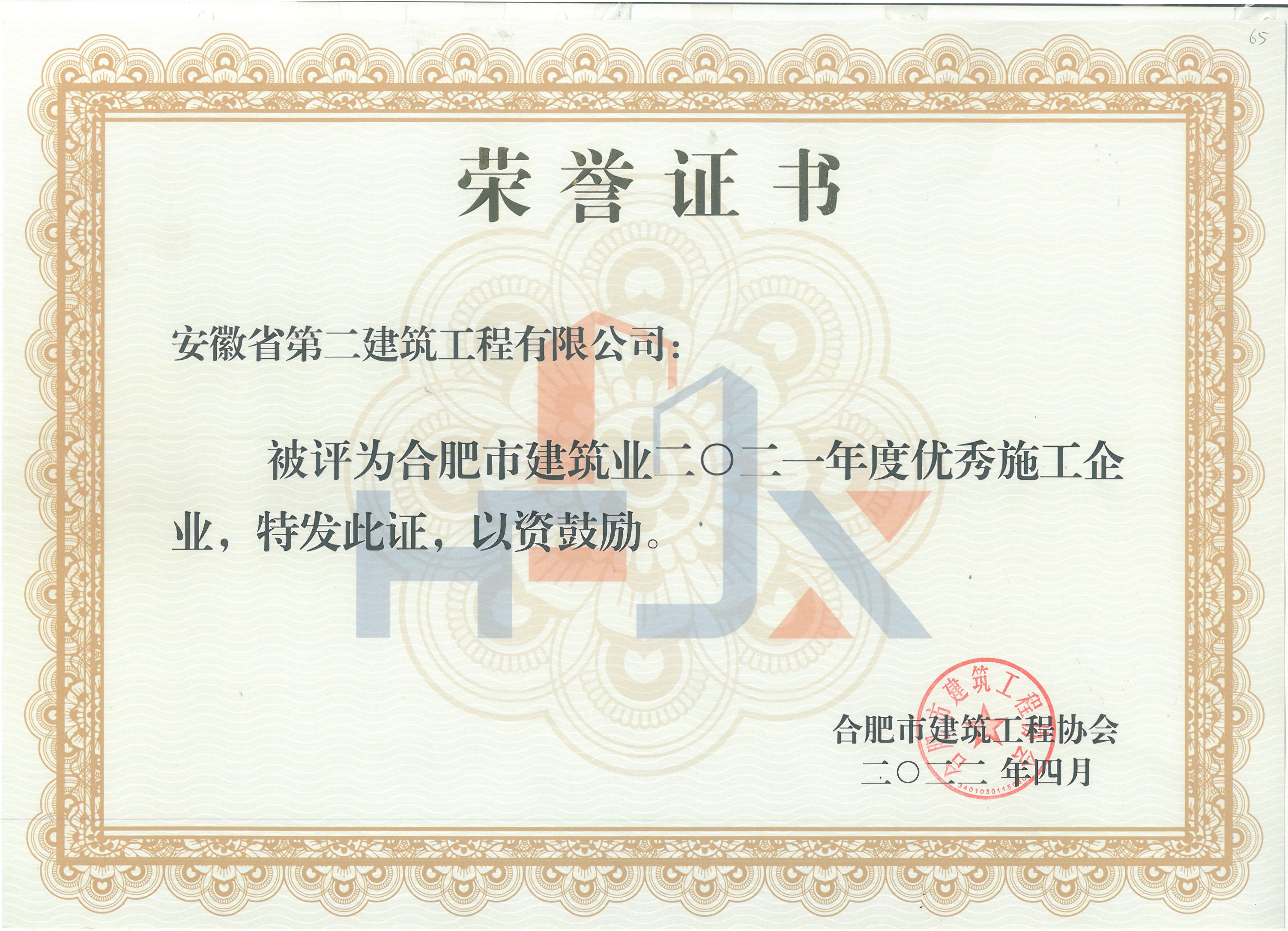 合肥市建筑業(yè)2021年度優(yōu)秀施工總承包企業(yè)