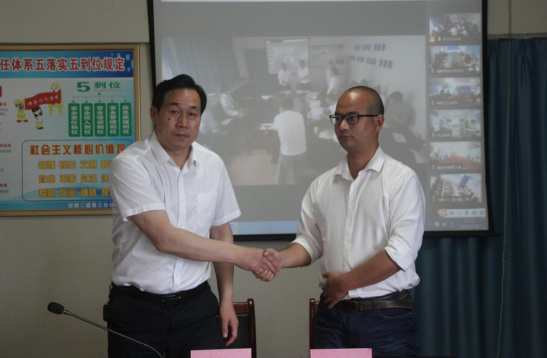 會上,分公司領(lǐng)導(dǎo)與項目經(jīng)理簽訂了《目標(biāo)責(zé)任狀》,為各責(zé)任主體完成全年指標(biāo)下達(dá)了“任務(wù)書”,確立了考核依據(jù)。