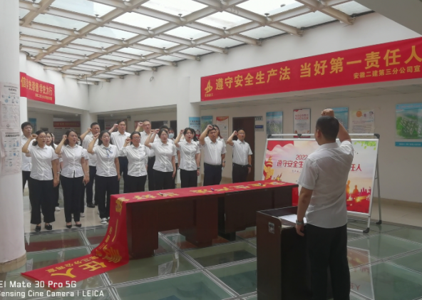 6月1日上午,安徽二建公司舉辦了以“遵守安全生產(chǎn)法、當(dāng)好第一責(zé)任人”為主題的2022年“安全生產(chǎn)月”啟動(dòng)儀式暨安全宣誓、安全承諾簽名活動(dòng)。公司黨委副書(shū)記、總經(jīng)理、安委會(huì)主任李建成,黨委副書(shū)記、工會(huì)主席王軍,黨委委員、副總經(jīng)理、總工程師費(fèi)勤波出席活動(dòng),黨委委員、副總經(jīng)理、安委會(huì)副主任葉和永主持活動(dòng)。機(jī)關(guān)各部門正副職、所屬各單位主要領(lǐng)導(dǎo)、分管安全領(lǐng)導(dǎo)、安全科長(zhǎng)等參加活動(dòng)。