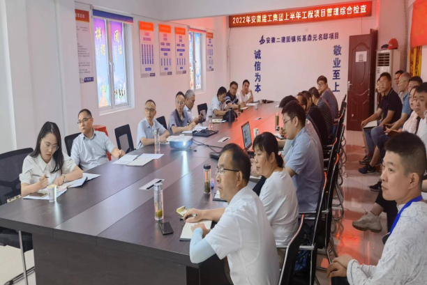 為扎實推進“項目基礎(chǔ)管理年”活動,以檢查促落實、促整改、促提升,2022年6月28日,建工股份公司工程管理部(安全監(jiān)察局)督查員范毓慶一行8人赴安徽二建固鎮(zhèn)拓基鼎元名邸項目,開展上半年工程項目管理綜合檢查工作。安徽二建公司黨委委員、副總經(jīng)理葉和永,總經(jīng)理助理、第一分公司經(jīng)理崔書斌及公司相關(guān)職能部門負責(zé)人參加。