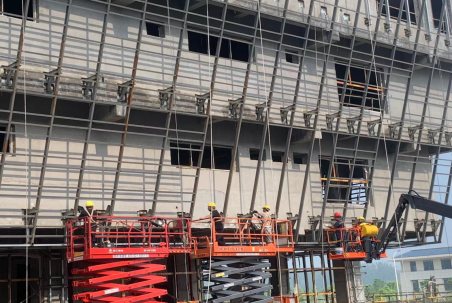 目前,宿州三館一院一中心項(xiàng)目已全面進(jìn)入到裝飾裝修階段,按照下半年生產(chǎn)目標(biāo),項(xiàng)目部針對室內(nèi)裝修、室外鋪裝、幕墻安裝、鋼網(wǎng)架等工作內(nèi)容細(xì)化階段目標(biāo)和責(zé)任人,每晚組織技術(shù)科、施工科與裝修班組、安裝班組召開生產(chǎn)進(jìn)度分析會(huì),對當(dāng)天問題及時(shí)溝通和解決,保證不耽誤生產(chǎn)進(jìn)度。