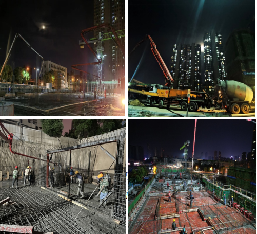 為完成各項節(jié)點計劃,項目管理人員帶領(lǐng)各勞務(wù)班組“搶晴天、戰(zhàn)雨天,牛毛細雨當好天”,搶抓工期,比拼進度;進入夏季以來,持續(xù)高溫,市氣象部門接連多次發(fā)布橙色預(yù)警,戶外溫度常達40度以上,為確保工人作業(yè)安全,項目部及時調(diào)整施工作業(yè)時間,在確保施工安全的前提下,采取“干兩頭、歇中間”的施工措施,組織班組加班加點分批交叉作業(yè),呈現(xiàn)出“月亮底下當白天,不給黑夜留時間”的大干火熱場面。同時項目部每日在高溫時段為現(xiàn)場施工人員送去防暑藥品和降溫飲品,防止意外發(fā)生。隨著最近氣溫逐漸轉(zhuǎn)涼,整個施工現(xiàn)場挖機聲、機械聲、泵送聲相互交織;夜色下施工現(xiàn)場燈光如晝,人頭躦動;渣土車、混凝土罐車川流不息往返穿梭,現(xiàn)場各個工作面的施工人員都卯足勁往前沖。